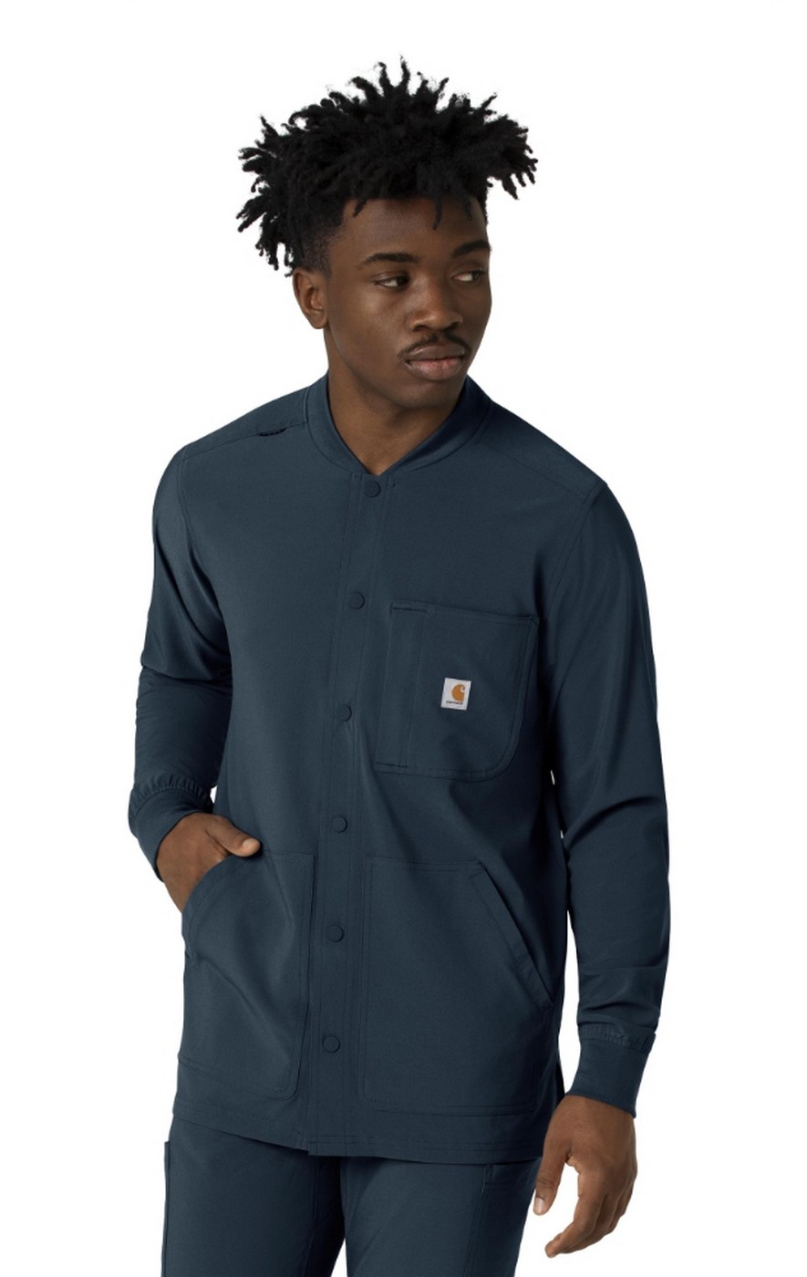 Versatility is the name of your game. You're always ready to switch gears, whether it's completing your own tasks or helping your fellow nurses with theirs. This men's shirt jacket does the same, blending the polished style of a shirt with the coverage of a jacket. It's the perfect layer for days when temperatures fluctuate or the air conditioning varies from room to room. Built for durability, it's made with a stretchy, comfortable fabric that includes micro ripstop to handle the rigors of your daily life at work. A knit collar and snap-button front accent the design for a cozy touch that adds just the right amount of tailoring. Keep everything where you need it with a chest pocket built with a pen slot plus internal loops for your badge or glasses. The lower front pockets are oversized, and there's even a pocket just for your phone for fumble-free access. This shirt jacket is part of our Force Cross-Flex collection, designed to help you excel on every shift. It wicks sweat and dries fast, and it's built to move with Rugged Flex™ stretch technology.