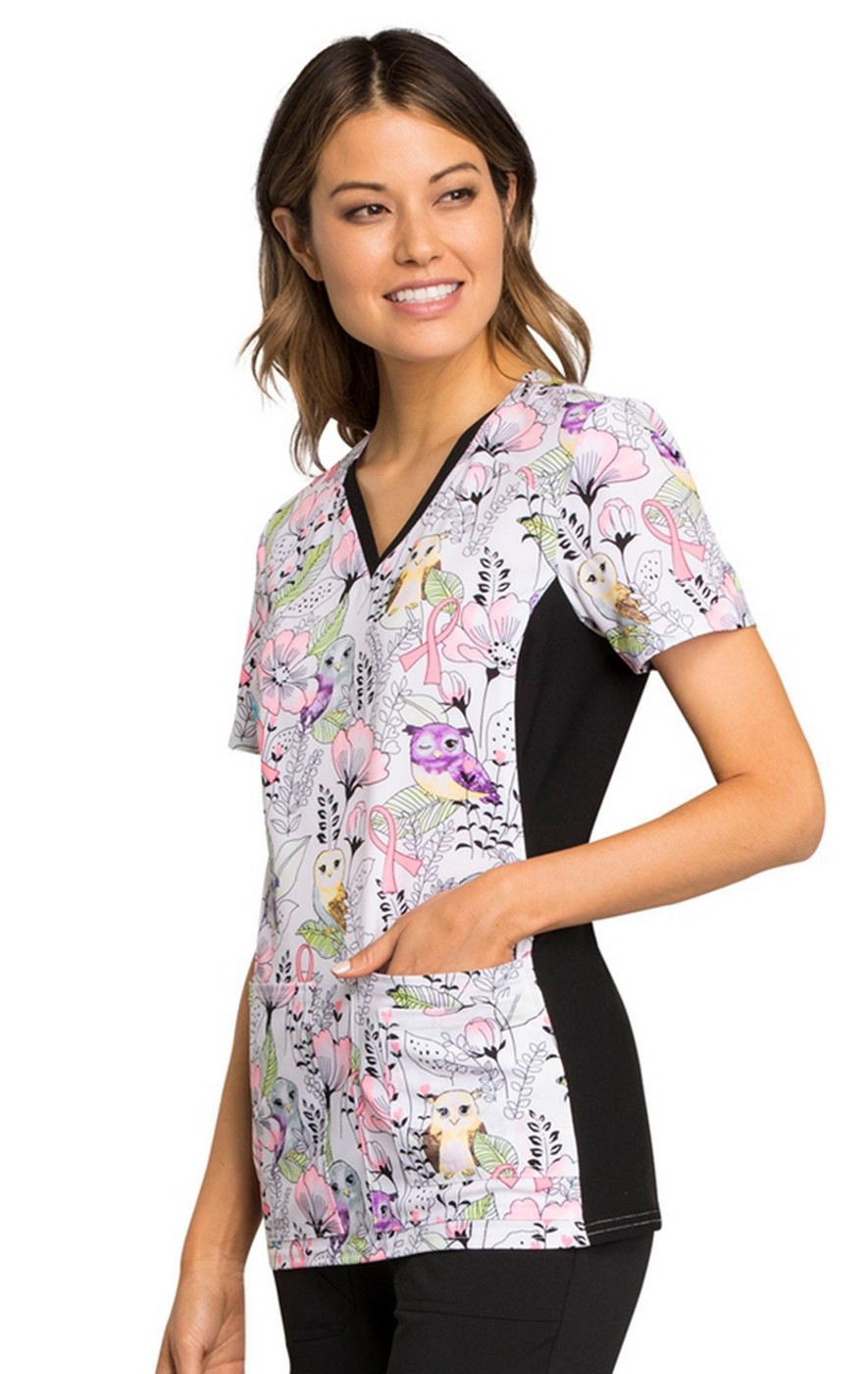 *FINAL SALE V-Neck Knit Panel Top in Owl Be In The Garden - Cherokee iFlex