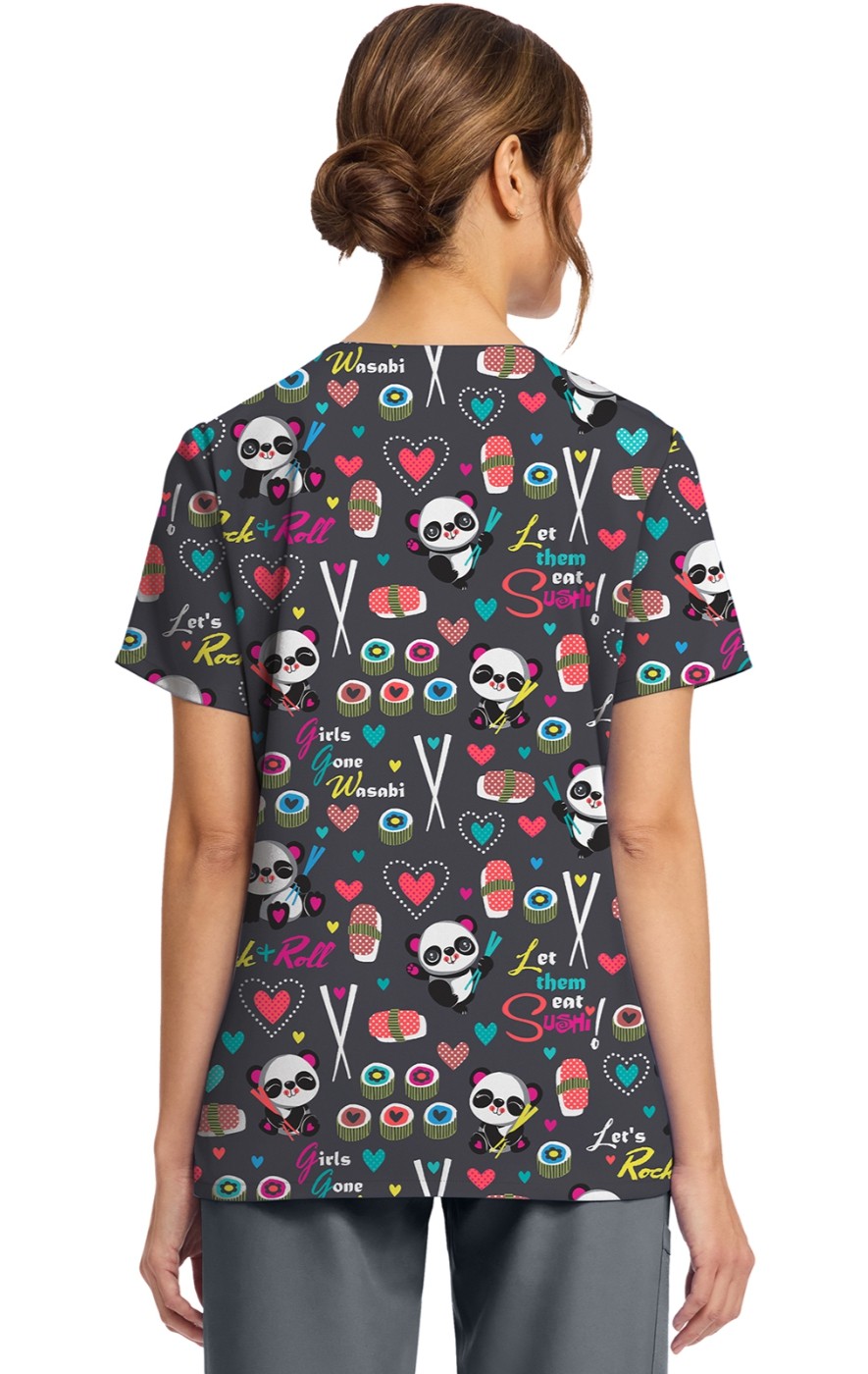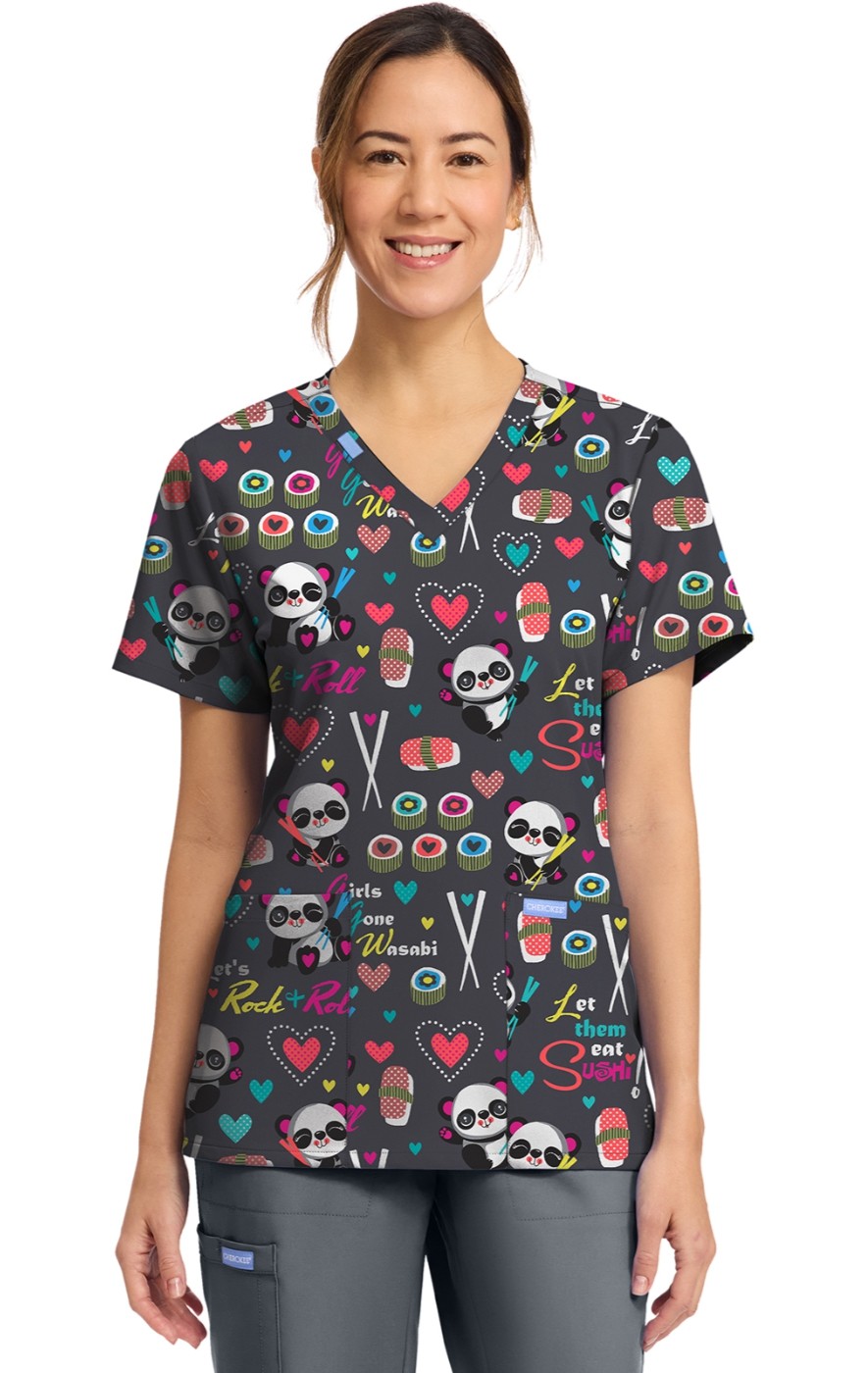 CK856 V-Neck 2 Pocket Print Top by Cherokee - Girls Gone Wasabi