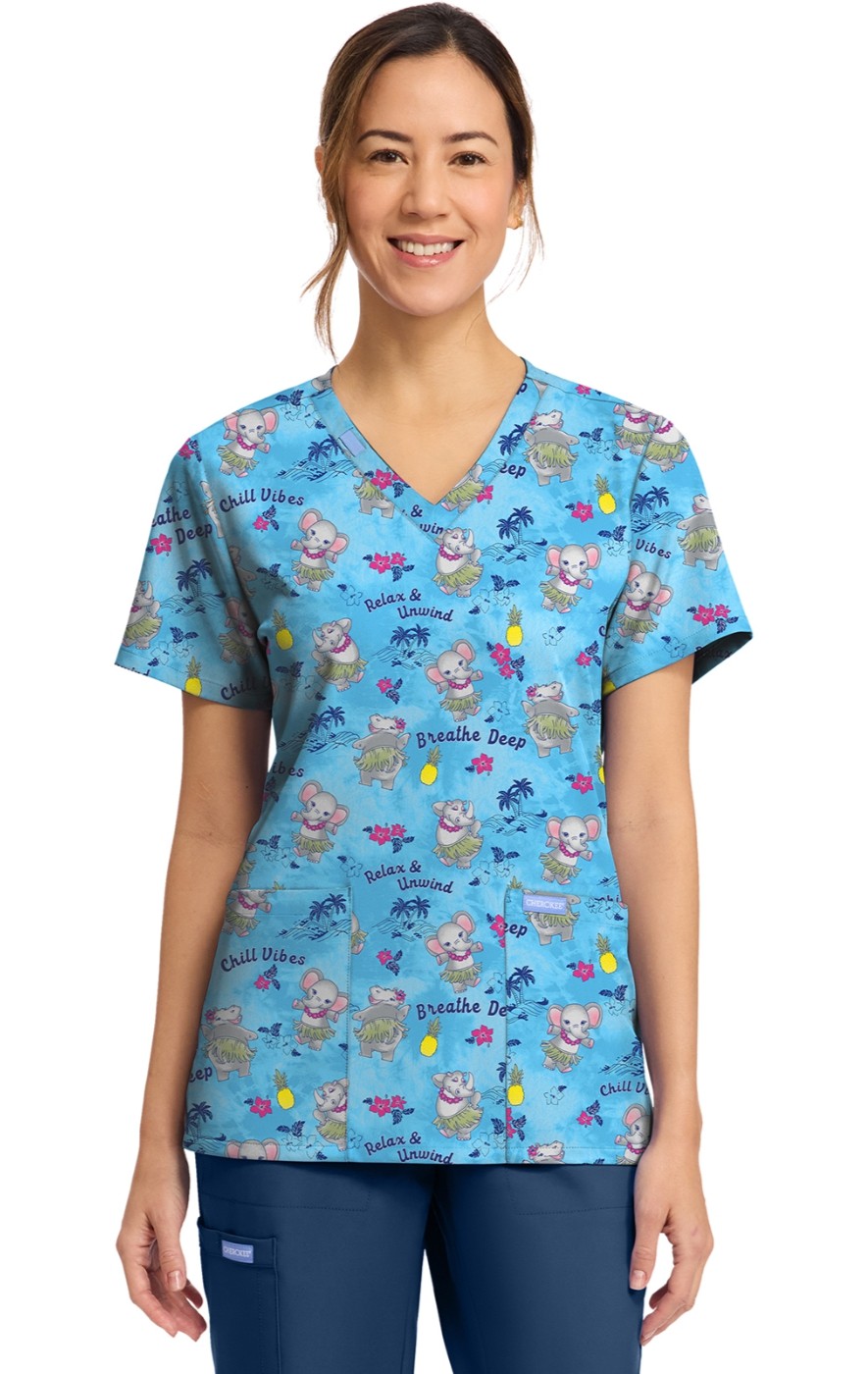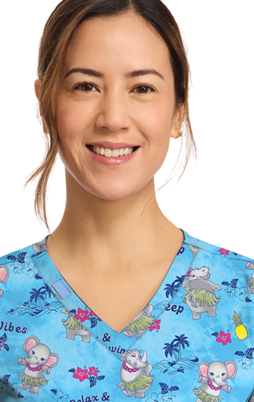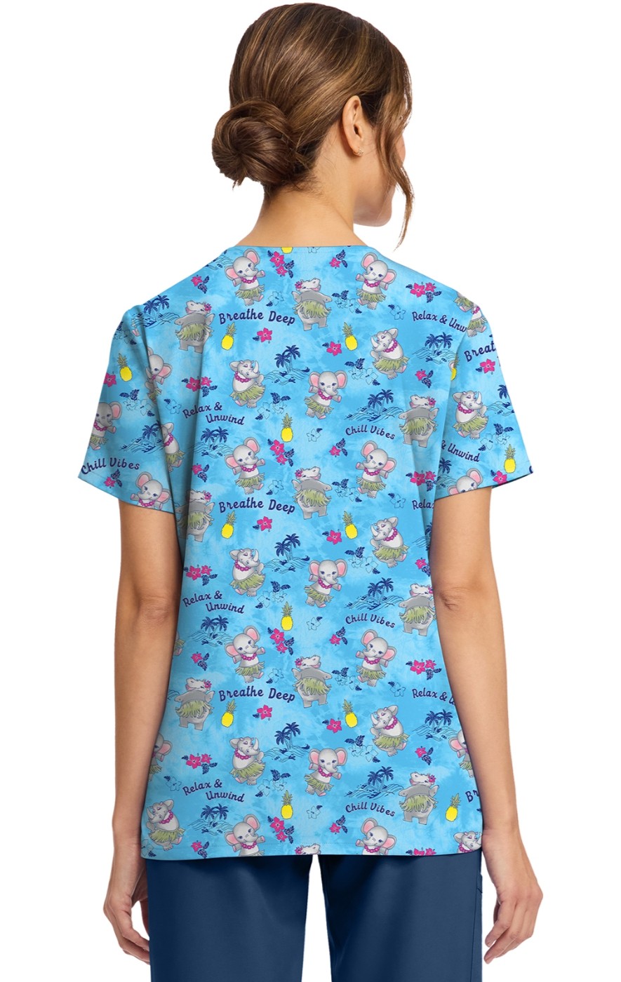 CK856 V-Neck 2 Pocket Print Top by Cherokee - Hula Party