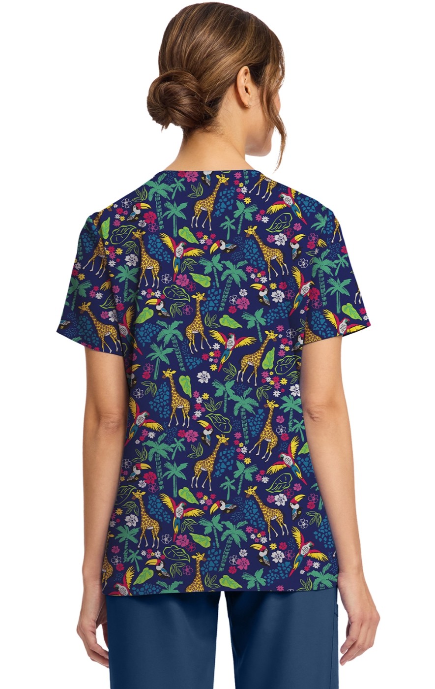 CK856 V-Neck 2 Pocket Print Top by Cherokee - Jungle Jive