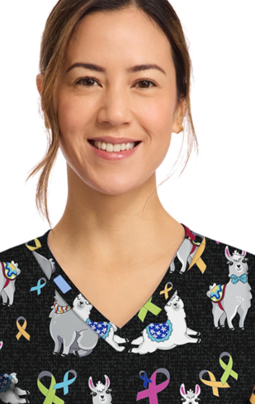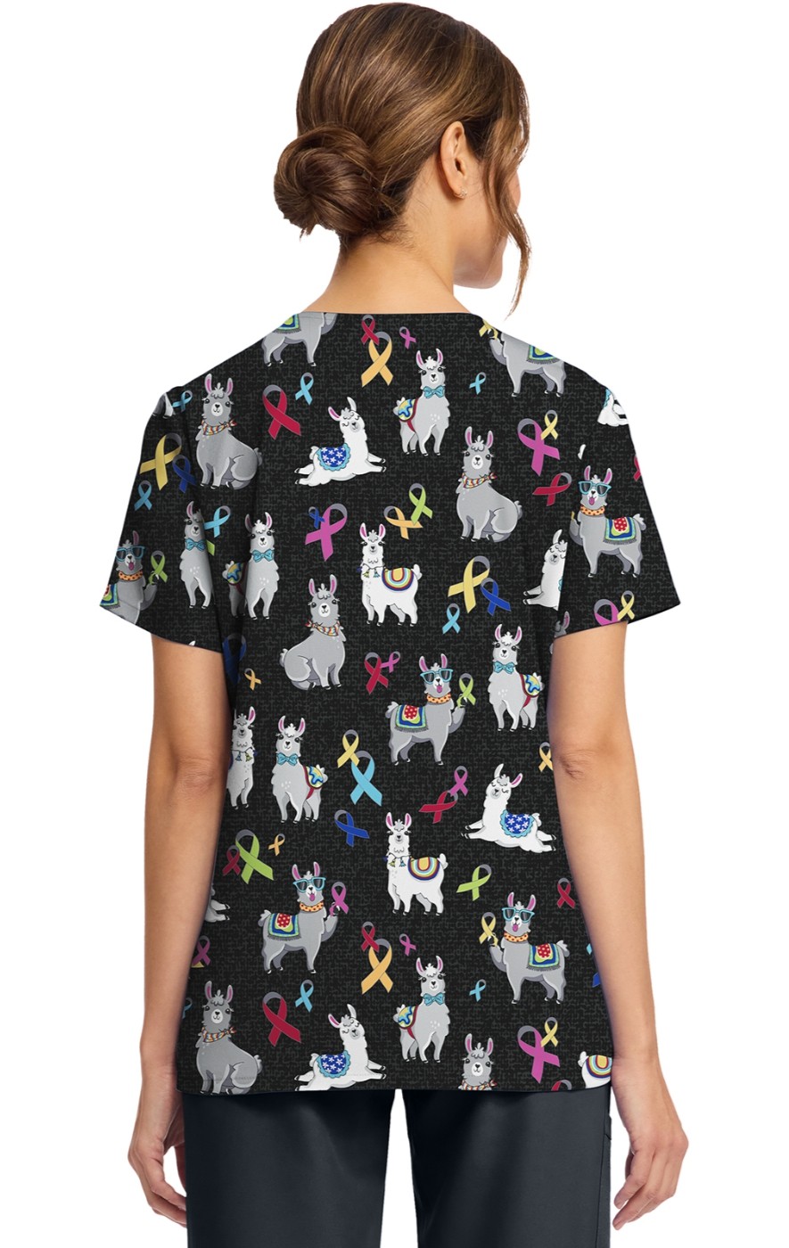 CK856 V-Neck 2 Pocket Print Top by Cherokee - Llama Be Aware