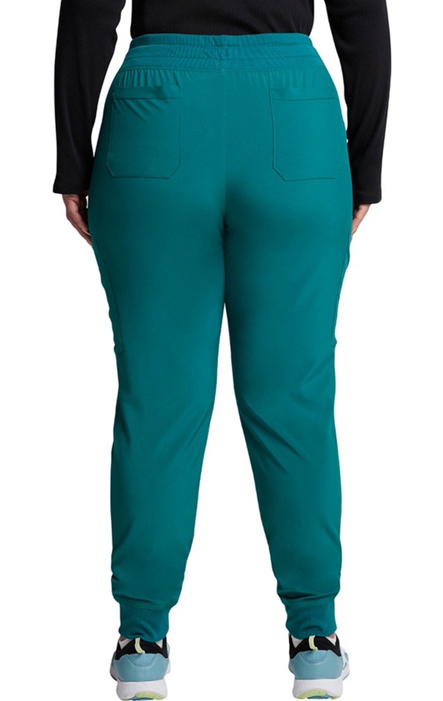 This mid rise jogger has a rib-knit covered elastic waistband with self drawstring. There are six pockets in total: two front patch pockets, two cargo pockets and two back patch pockets. Top of back pockets are finished with reverse hem for subtle design detail. Logo tape instrument loops inside wearer's right cargo pocket. Rib-knit cuffs complete the look.