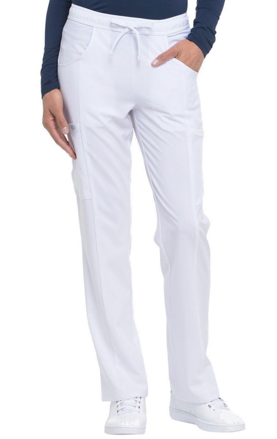A contemporary fit, mid rise, straight leg pant featuring an all around elastic waistband with a functional drawstring and seven pockets. Two front pockets, two cargo pockets, two back pockets, and a scissor pocket. Also featured is a signature tonal woven label, a utility twill tape and side vents.