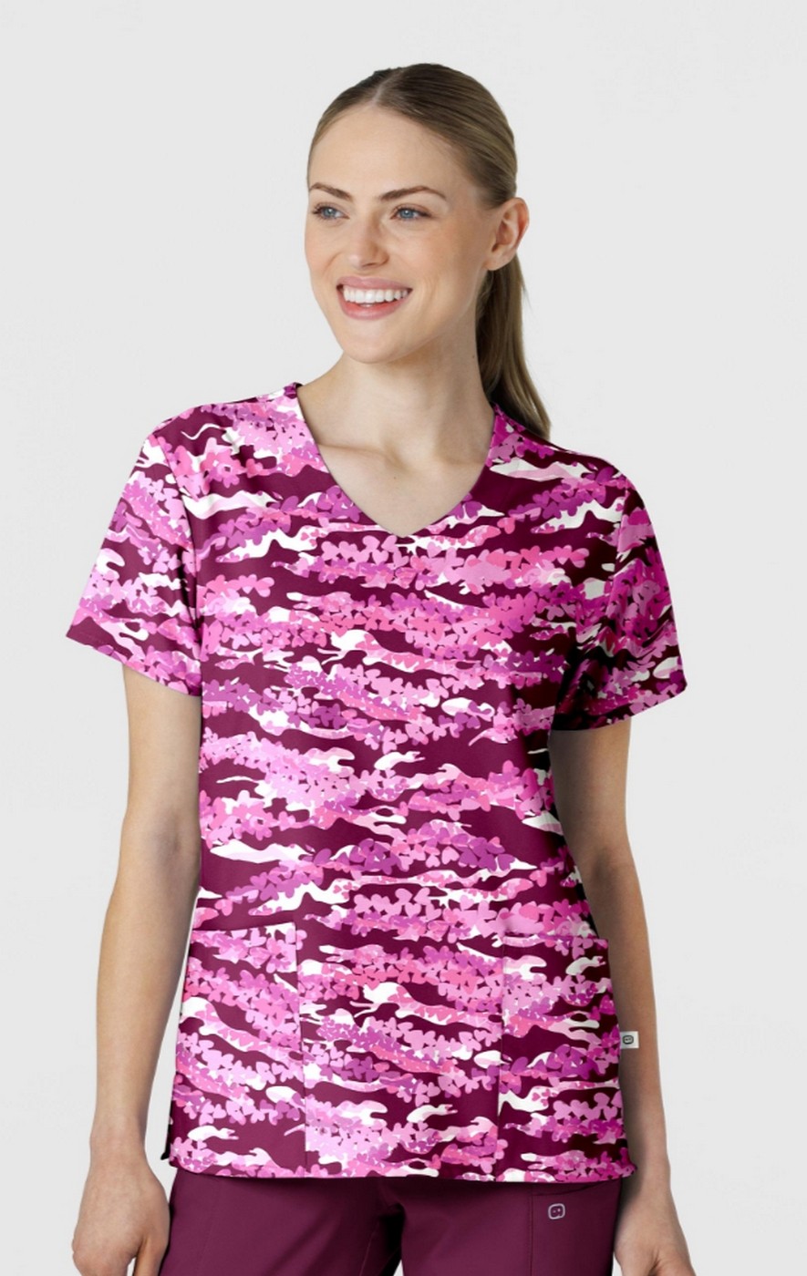 6147 WINK 2 Pocket V-Neck Print Top - Camo Crush