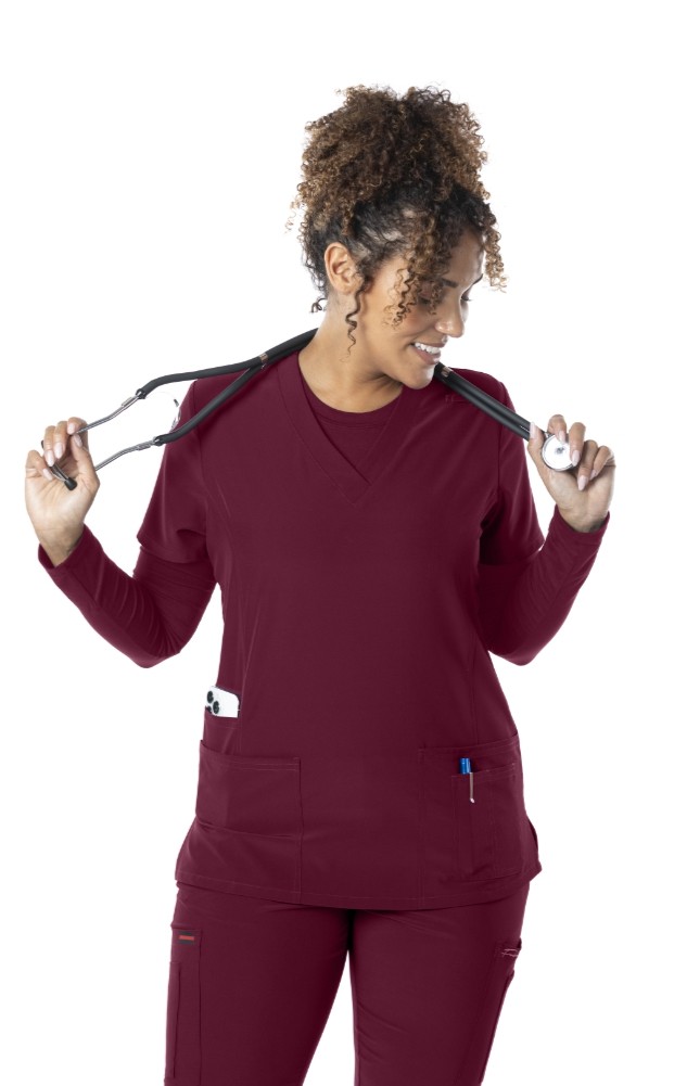 Crafted from a premium blend of 92% polyester and 8% spandex, this scrub top offers exceptional durability and a super soft feel against the skin. The fabric's 4-way stretch capability allows for unrestricted movement in any direction, making it ideal for long shifts and dynamic work environments. Additionally, the material is wrinkle-resistant, ensuring you maintain a polished, professional appearance throughout your day.