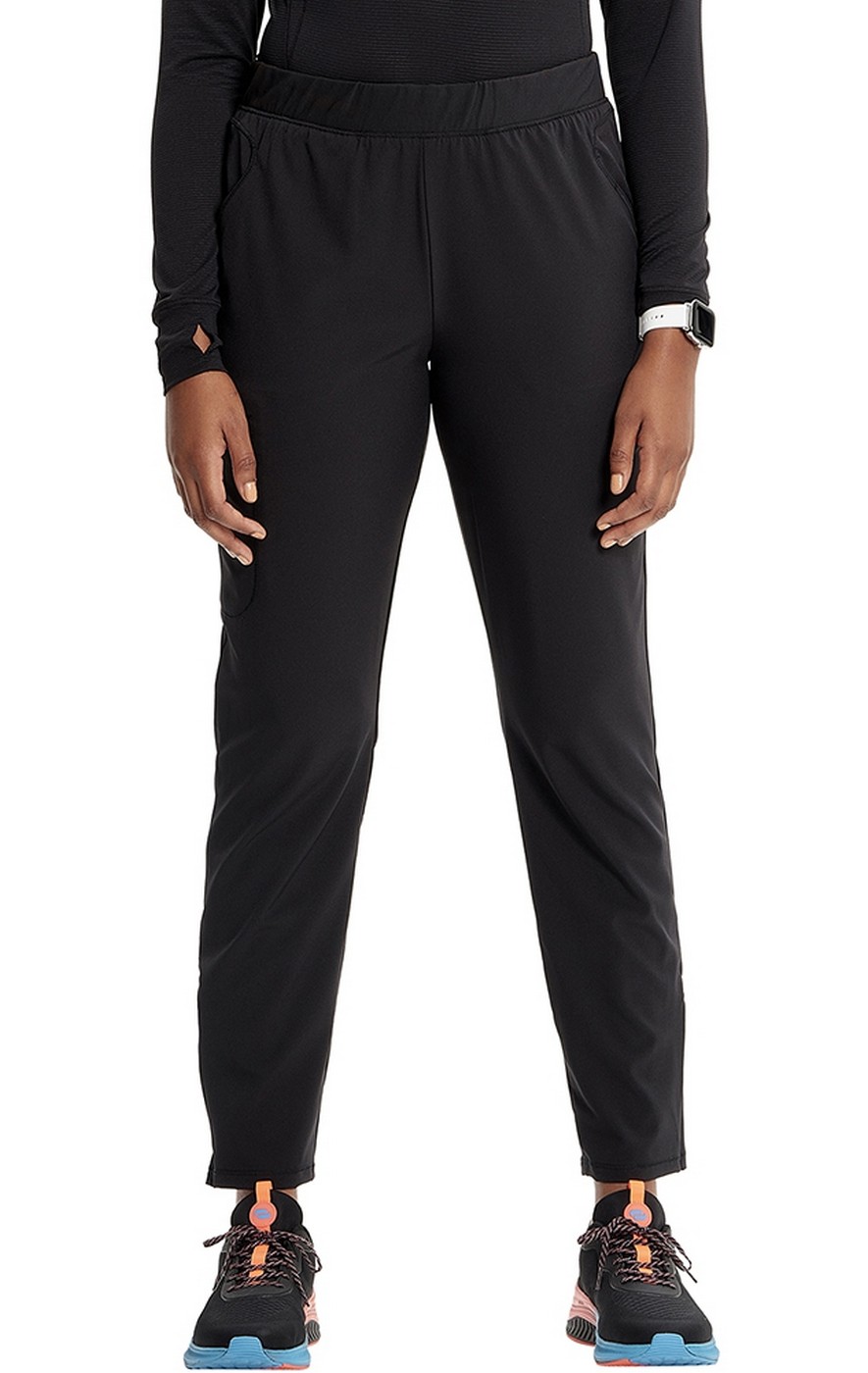 This Contemporary fit mid-rise pull-on pant has a rib-knit waistband with interior elastic and a flat elastic drawstring. There are five pockets: two front zip pockets, one welt cargo pocket, and two back zip in-seam pockets. Other features include a curved back yoke seam, signature contrast knit-mesh pocket bags and side vent lining, plus zip side vents.