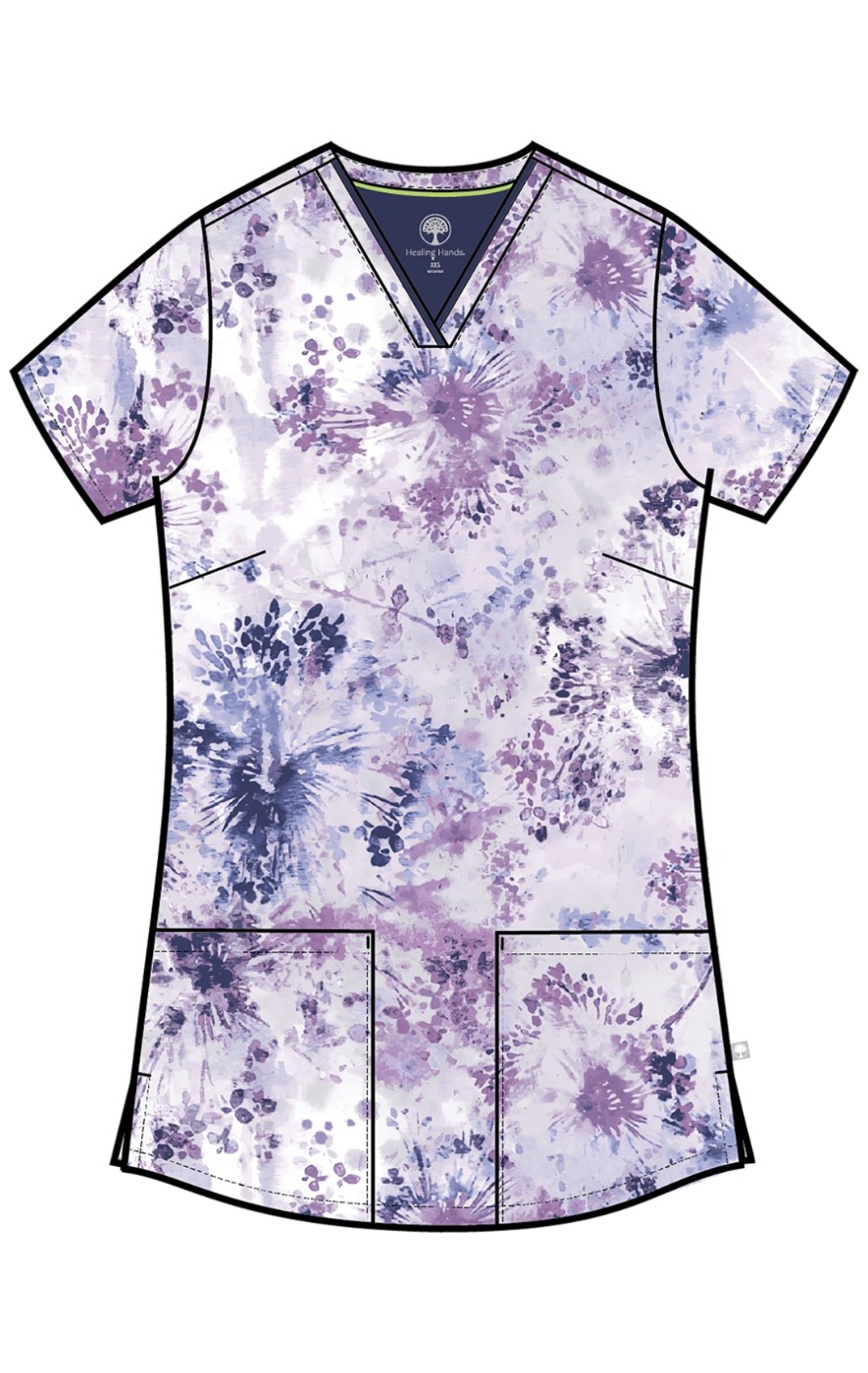 HH910 Healing Hands Amanda Grosgrain Ribbon V-Neck Print Top - Dandelion Burst