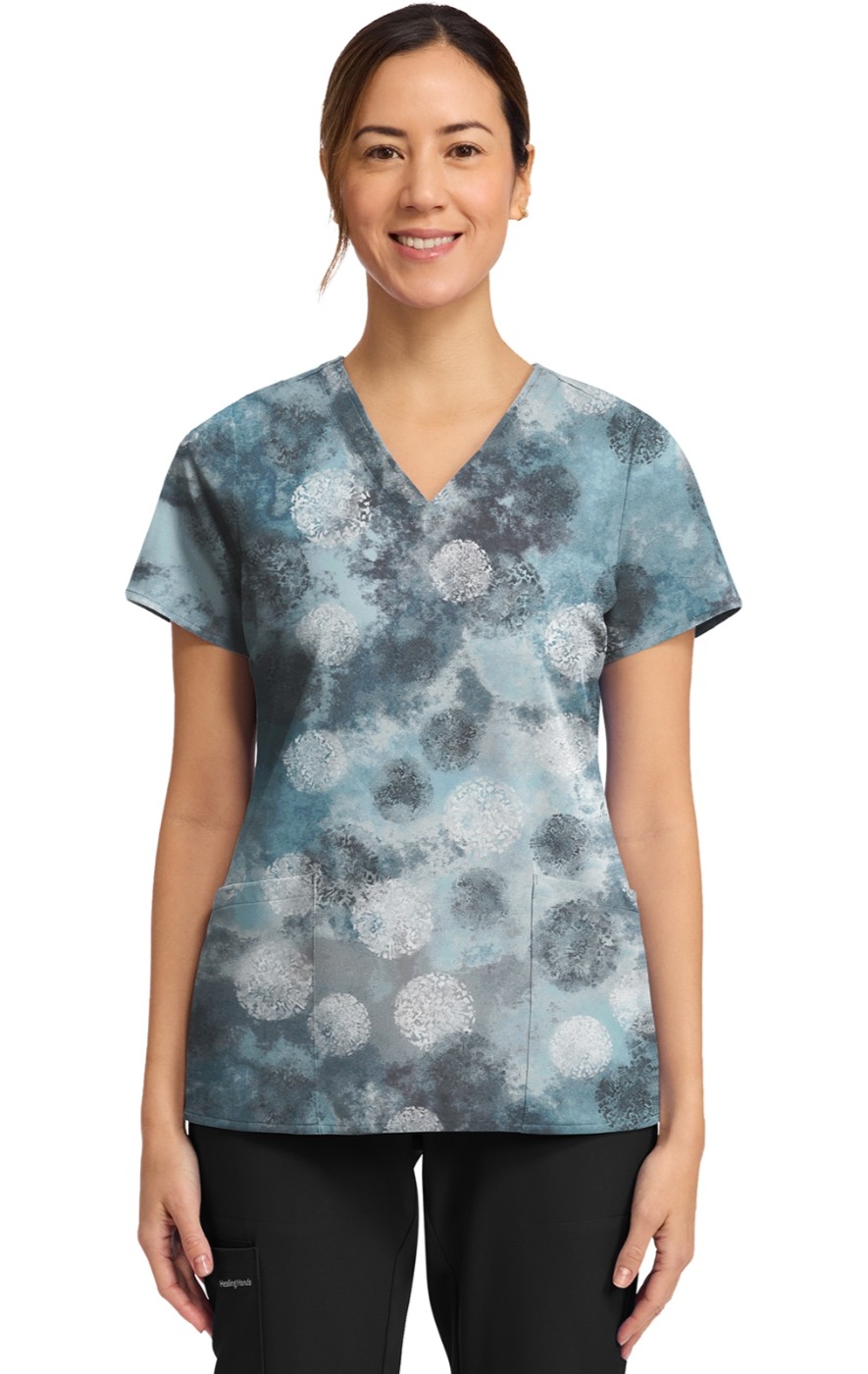 HH910 Healing Hands Amanda Grosgrain Ribbon V-Neck Print Top - Moody Dots