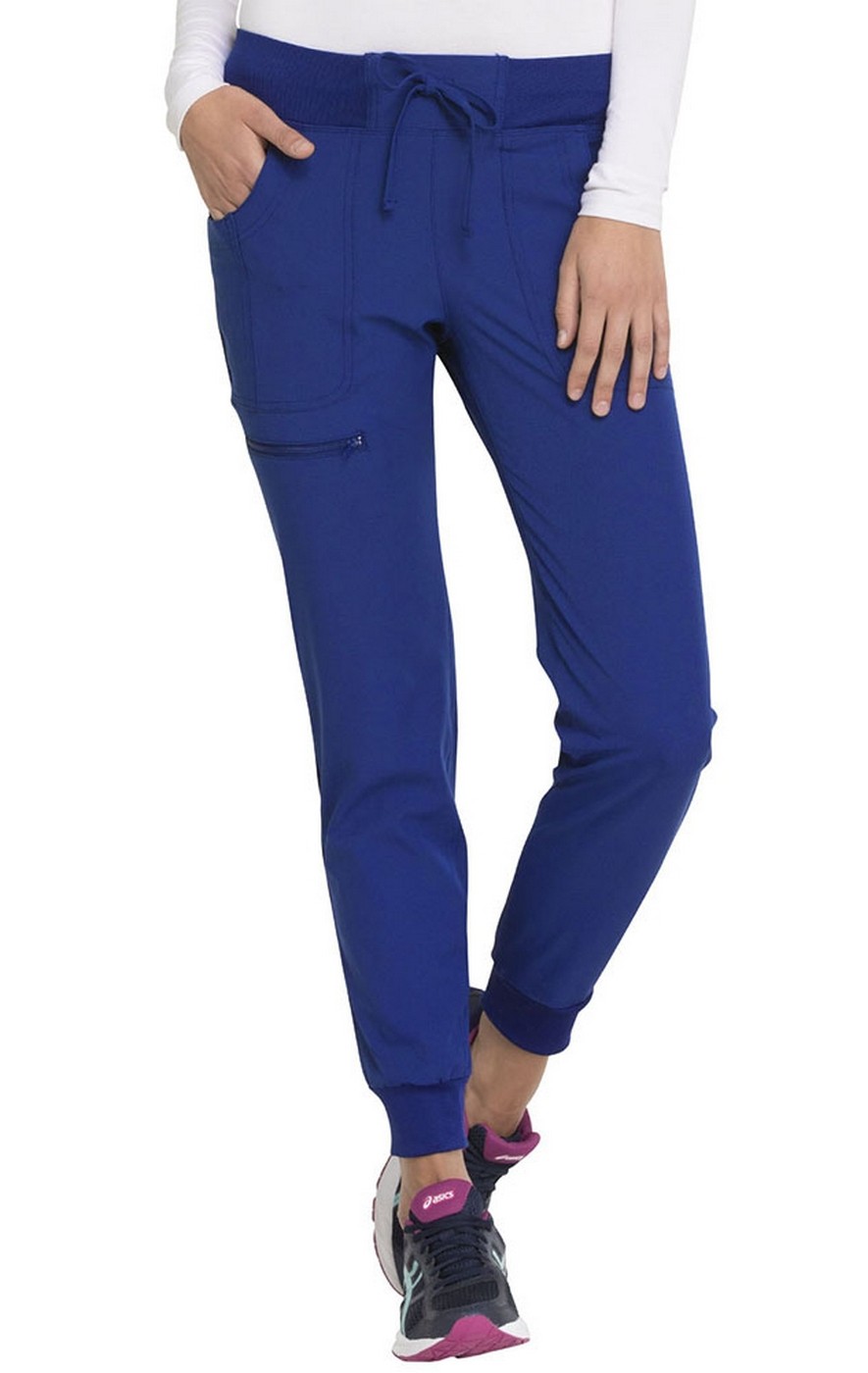 A Contemporary fit, low rise, tapered leg pant features a functional drawstring; all-around elastic waistband and leg openings made of rib knit; and signature triple-heart and dotted-heart heat transfers. Also featured are front rounded pockets with a pen slot, a zip-closure roomy cell phone pocket, rounded back patch pockets and a locker loop at the back waist.