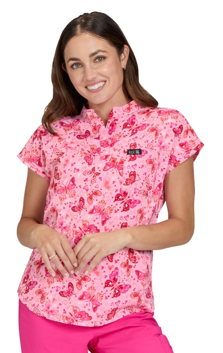 1093PR koi Basics Ari Split Neck Print Top - Butterfly Hearts