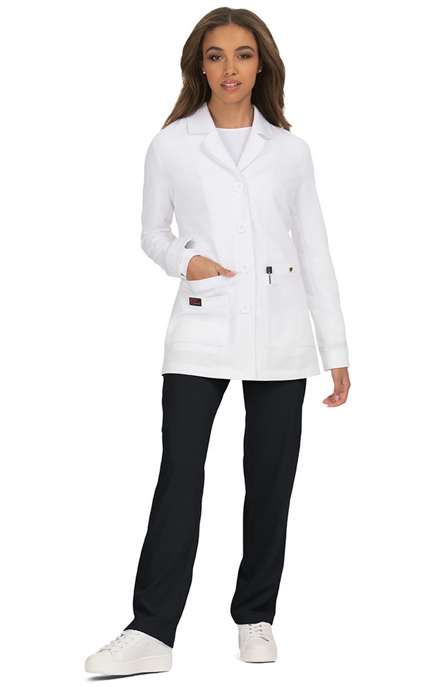 Who says you can't look professional and stylish at the same time? You will love the look and feel of this lightweight shorter-length lab coat made with our easy-care stretch fabric.