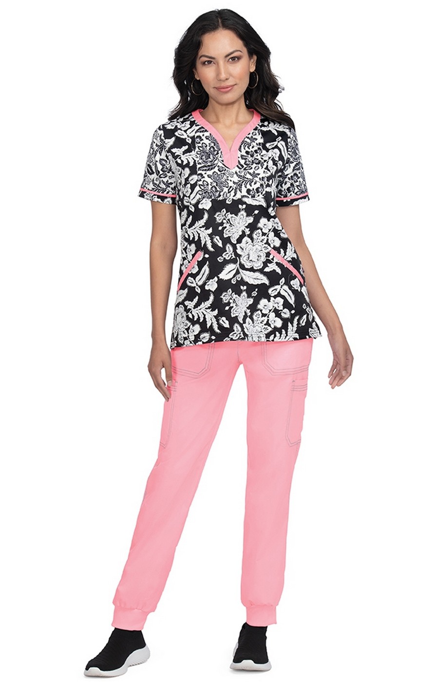 *FINAL SALE 1054PR koi Stretch Lennon Print Top - WoodBlock Floral