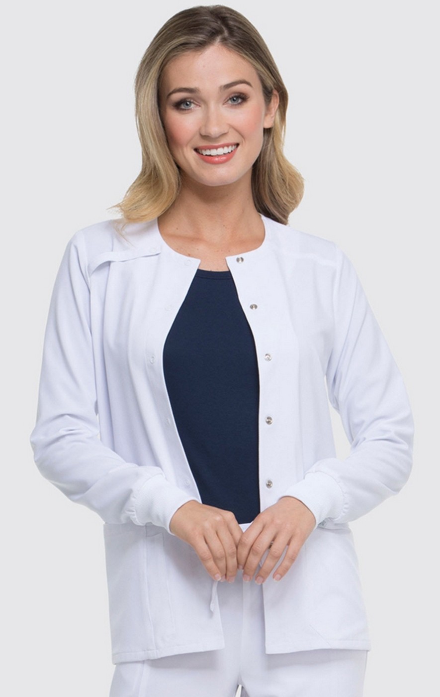 A contemporary fit, snap front warm-up jacket features two patch pockets and a pen slot. Also featured is a signature tonal woven label, a utility twill tape and a signature logo twill tape at the neck.