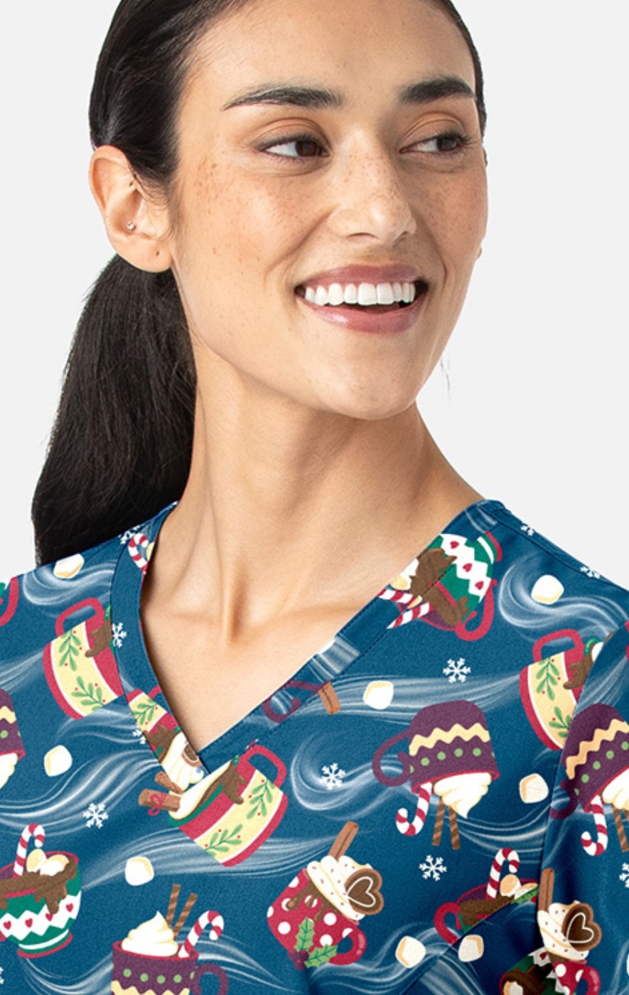 1797 Maevn Curved V-Neck Print Top - Festive Sips