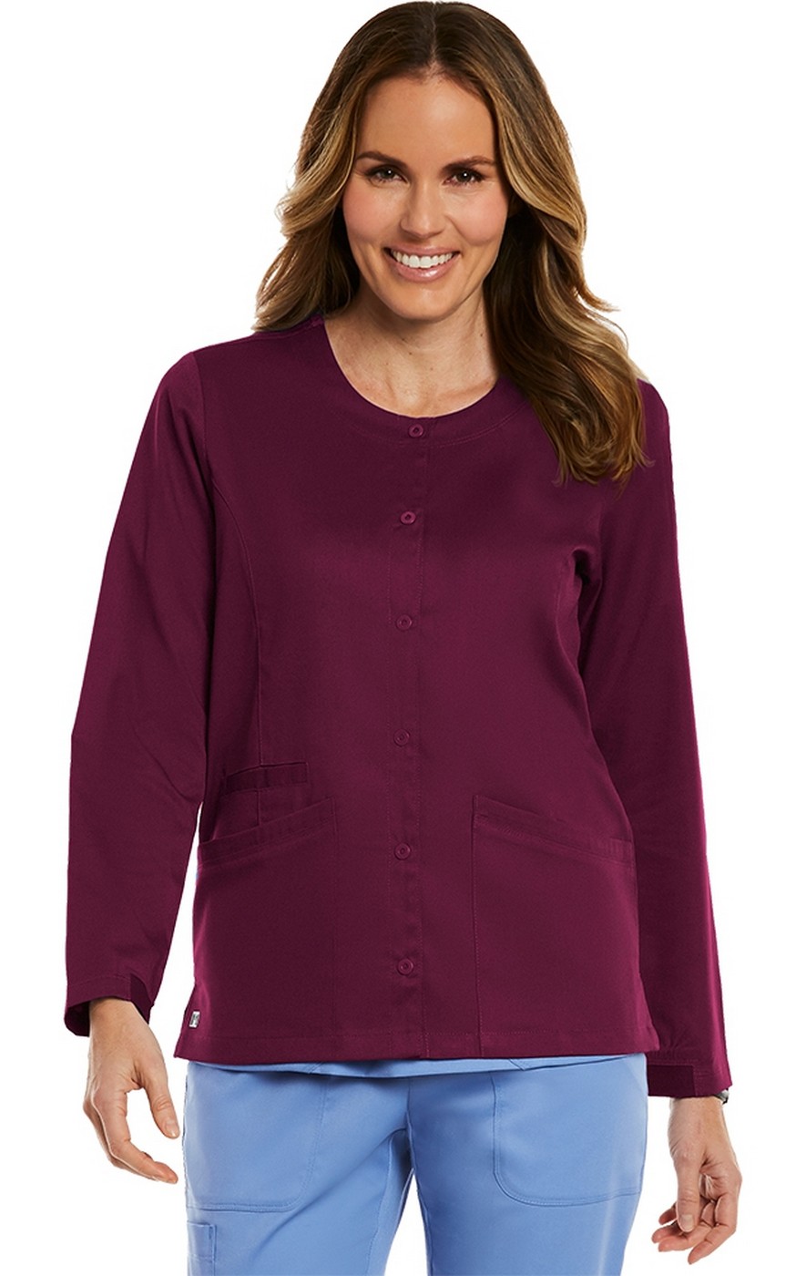 7701 Matrix Round Neck Snap Closure Jacket by Maevn