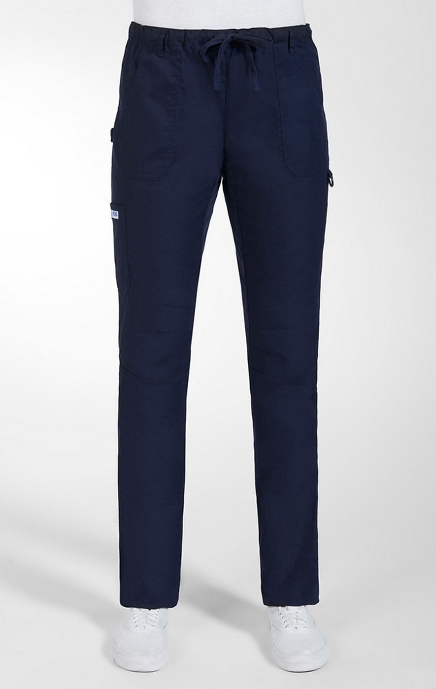 This pant is the perfect combination of function and flow. The waistband is both elastic and drawstring making it comfortable at any rise. It has multiple pockets including a pocket for scissors and features multi-needle stitching for durability. Length is 31". Fabric is poly/cotton 65/35. Sizing XS to 2XL.