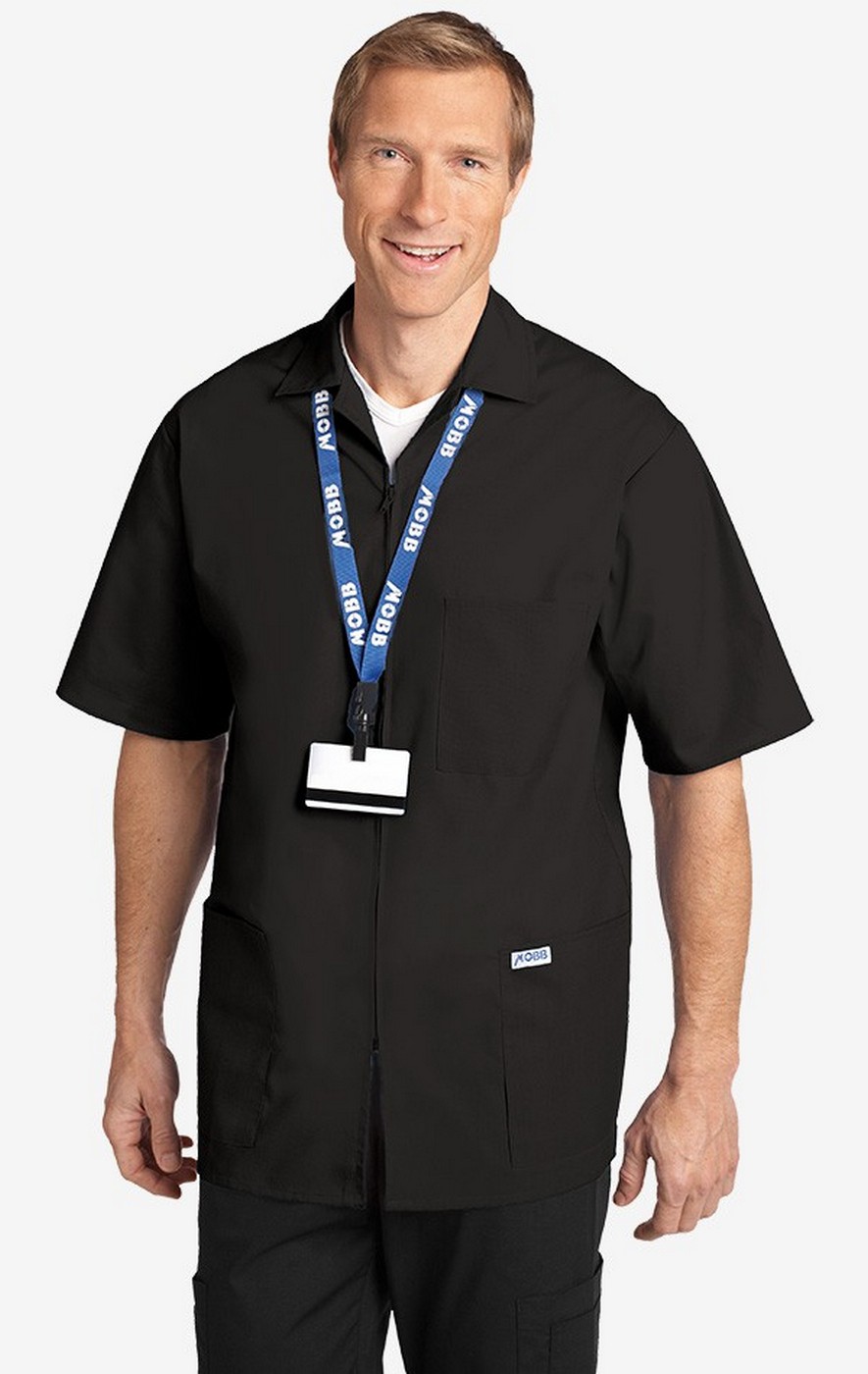 The look of lab coat and the feel of a scrub top. The unisex zip-up consultation jacket is the perfect choice for medical professionals. Featuring short sleeves, a full zipper front closure and 3 patch pockets. This top mates perfectly with all MOBB pants. Available in sizes XS to 2XL. Fabric is poly/cotton 65/35.