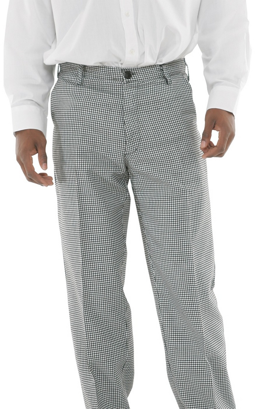 Combine a classic dress pant with the comfort of our MOBB chef pant and you get this flat-front White pant. Featuring a plain waistband with belt loops and a full brass zipper fly with button closure. Tailored for a modern, professional look. 2 front slant pockets and 2 back patch pockets. 7.5oz poly/cotton.