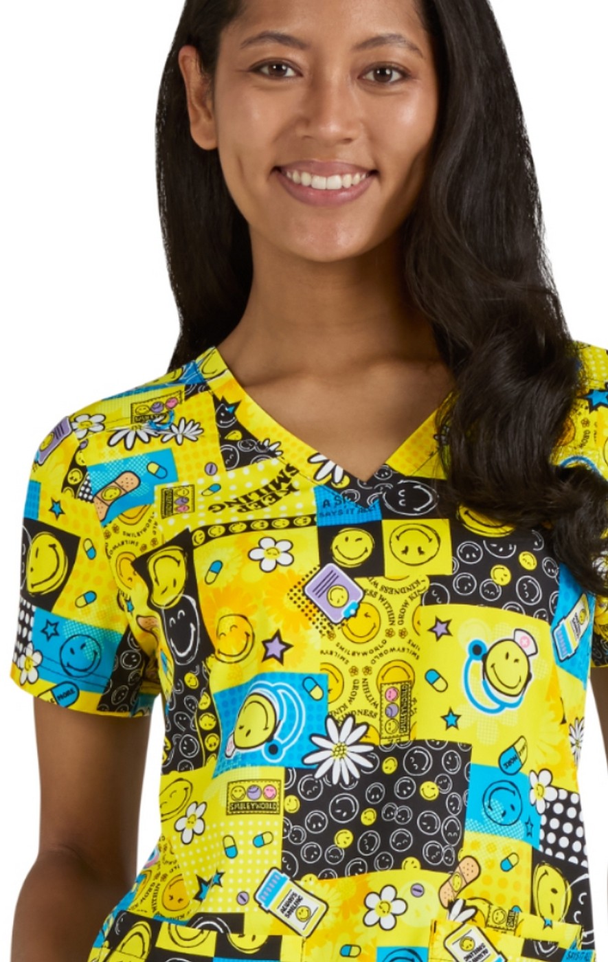 Playful women's print top that'll make you smile all over. A special collaboration between koi and Smiley World.