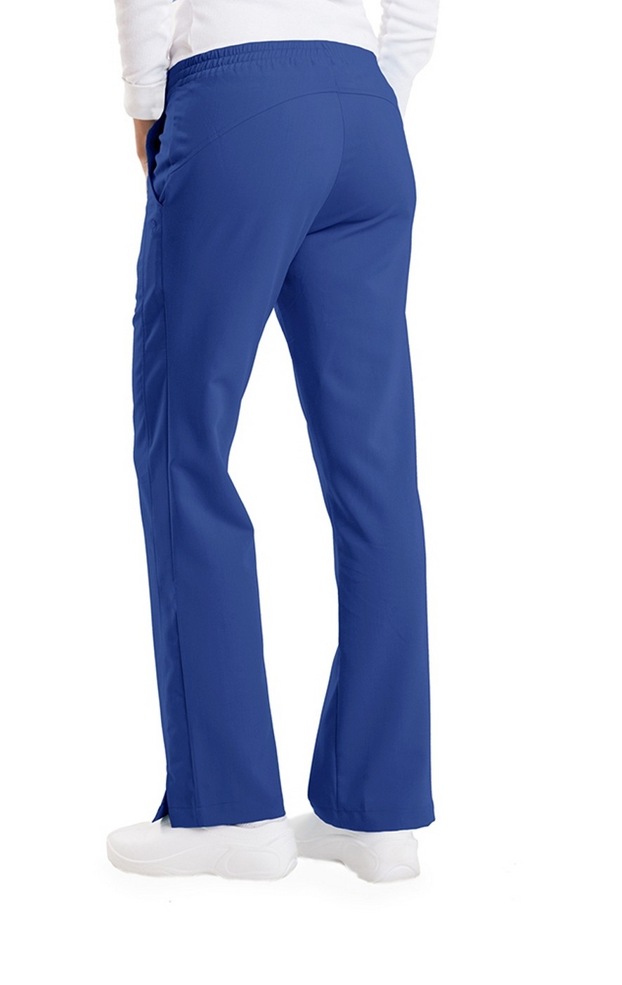 Healing Hands 9095 Junior fit drawstring pant features a mid-rise fit with boot cut legs. This pant has a flat front grommet detail on the drawstring for ease of adjustment. The front features a slimming wrap design which adds no bulk at the sides. There is a wide comfort elastic waistband in the back that stays secure, along with a back yoke detail for a sleek fit. There are two side pockets for storage and side slits for easy access. A dyed to match twill tape drawstring, top stitching detail and a "healing hands" embroidered logo on the pockets complete Healing Hands Taylor Pant. Fabric is 77/20/3 Poly/Rayon/Spandex. The inseam for Tall Length 33".