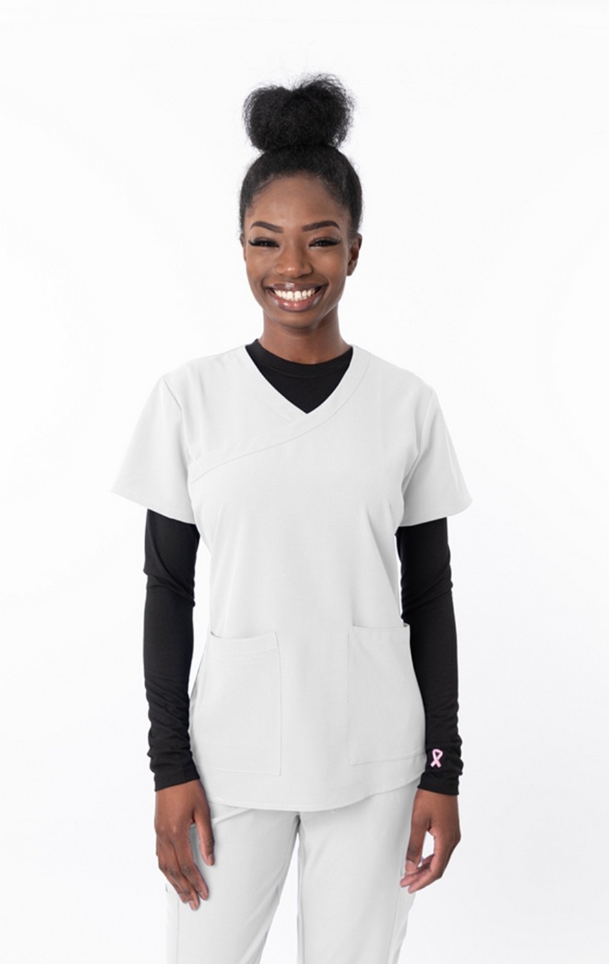 The Greentown 4 Flex performance knit scrub top part of Greentown’s newest line of activewear scrubs, is made to move. The polyester-spandex blend stretch fabric provides superior flexibility for even the most active medical professional. The Greentown 4 Flex scrub top has a sporty, mock wrap design with an attractive Y-neck collar. This top includes the convenience of two roomy patch pockets, and completely easy care wash & wear. Fabric 93% Polyester, 7% Spandex.