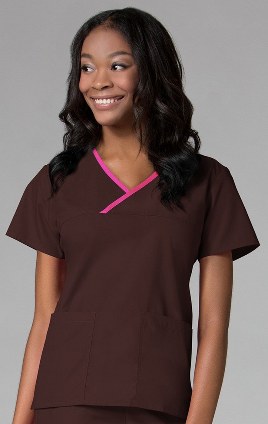 • Mock wrap top with contrast detailing