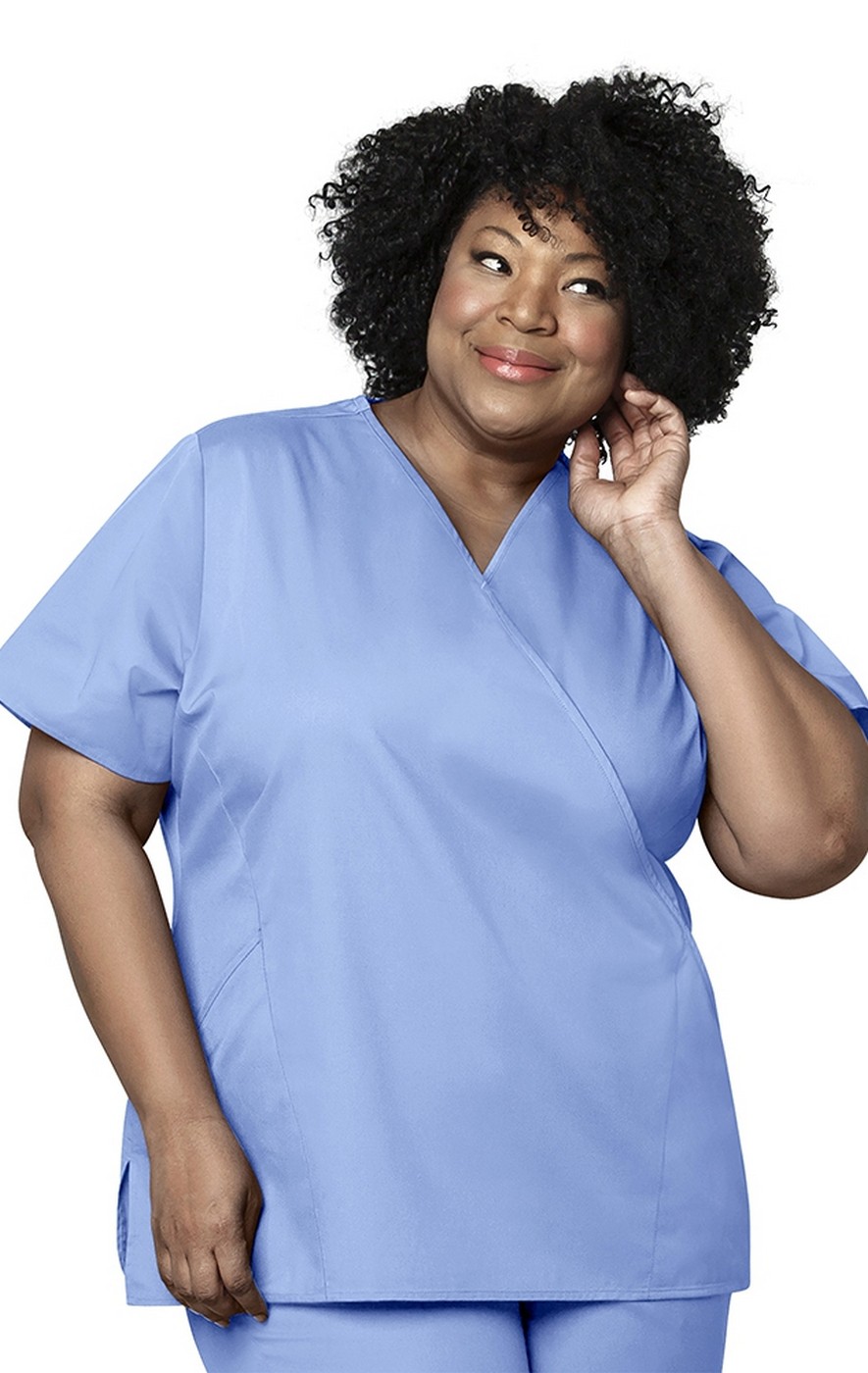 No fashion silhouette flatters quite like a wrap. The WonderWink women’s mock wrap scrub top from the WonderWORK collection borrows that slimming style and adds sporty princess seaming to perfect the shape. Two large front slash pockets integrate perfectly with the lines of the faux wrap, providing oodles of hands-free storage for your accessories. Available in a number of fashionable colors.