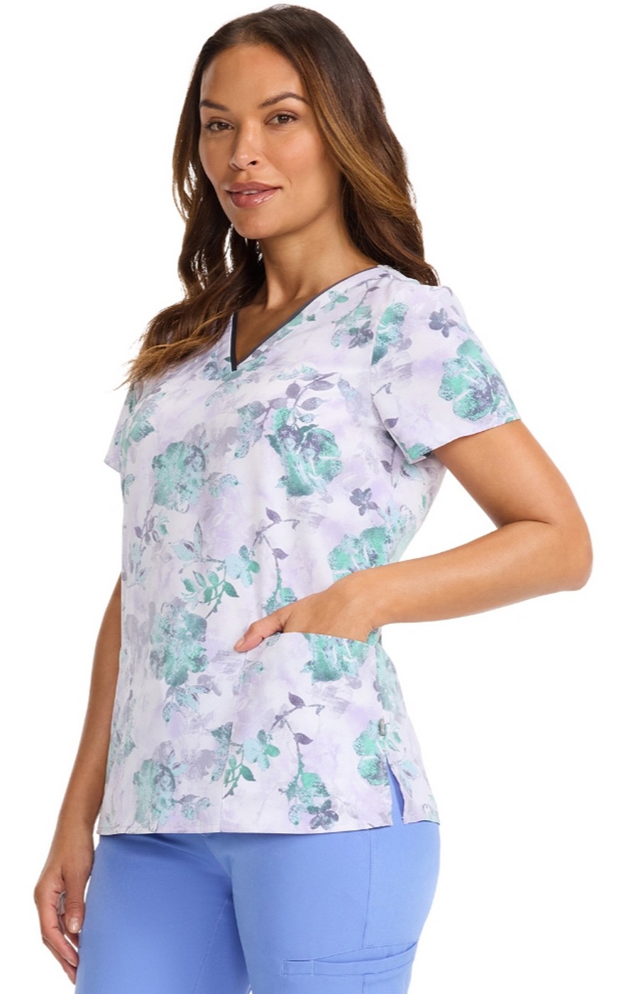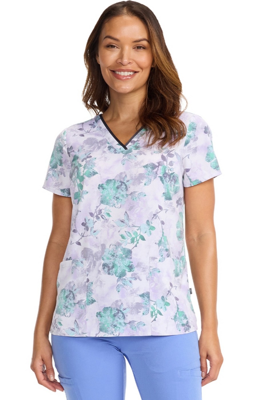 HH910 Healing Hands Amanda Haut Imprimer à Col en V avec Ruban Grosgrain - Quiet Petals