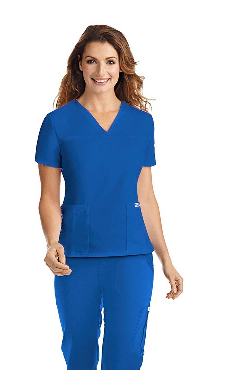 Simple à son meilleur, ce haut classique à col en V est conçu avec une ligne de détail double couture sur la poitrine et deux lignes ajustées dans le dos. Deux poches plaquées inférieures, le côté droit est fermé avec des poches sectionnelles intérieures. Le haut est fini avec deux petites fentes latérales et une poche pratique pour stylo à épaule.